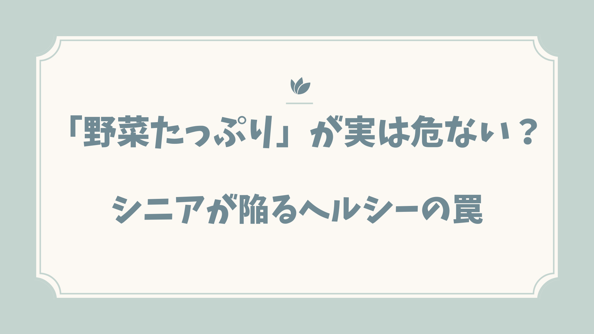 野菜はしっかり食べているはずなのに、どういうわけか体が弱っていく。実はこれ、シニア世代がはまりやすい「ヘルシーの罠」だったんです。今回は、善意で続けている食生活が「フレイル(虚弱)」を招いているかもしれない…という、少しハッとさせられる話を書いてみます。